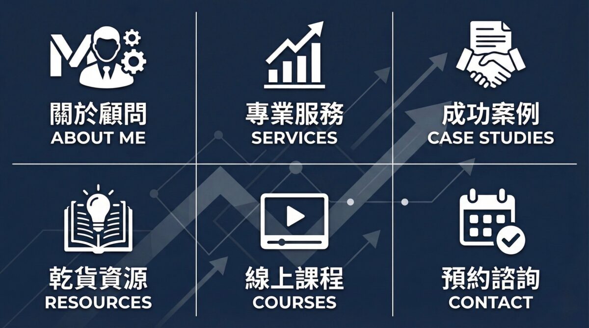 設計「名片式選單」,一次整合個人介紹、課程大綱與諮詢入口。