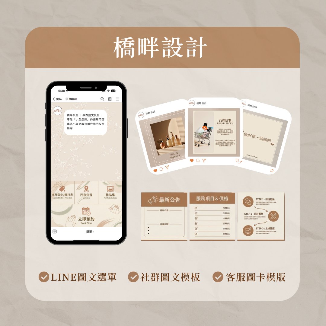 - 風格統一:從 IG 貼文到 LINE 選單,讓品牌看起來穩定、專業、有記憶點。